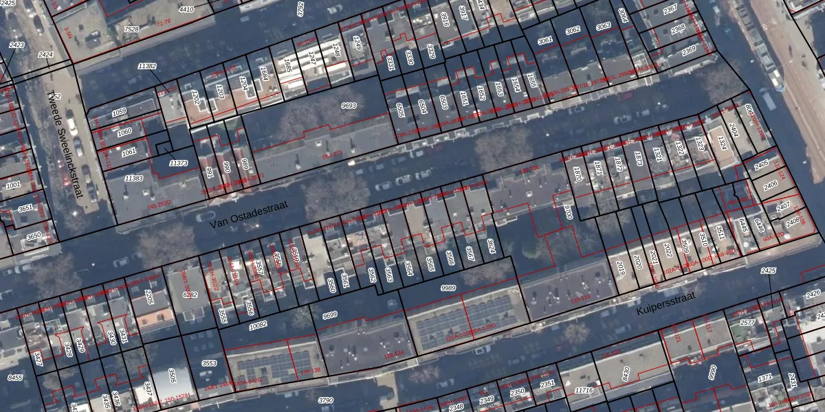 Van Ostadestraat 322-1 is gelegen op kadastraal perceel ASD18V3565. Deze kadastrale aanduiding is uniek en wordt gebruikt door het Kadaster om eigendomsrechten en andere zakelijke rechten vast te leggen. Het perceel maakt onderdeel uit van de kadastrale gemeente Amsterdam.