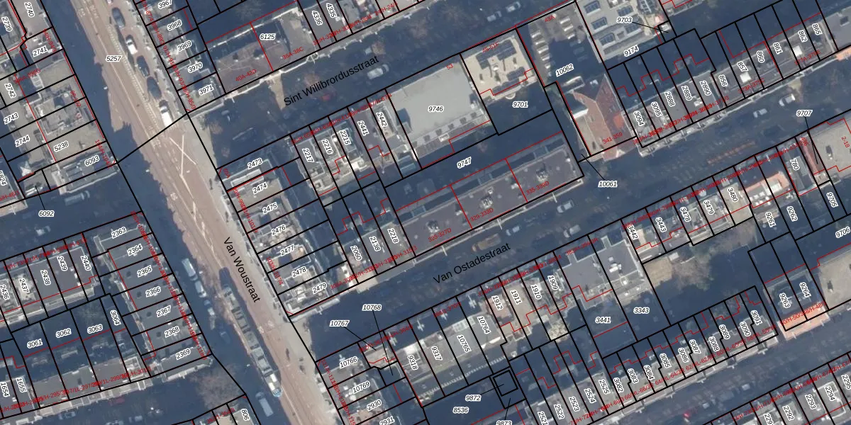 Van Ostadestraat 325-A is gelegen op kadastraal perceel ASD18V9747. Deze kadastrale aanduiding is uniek en wordt gebruikt door het Kadaster om eigendomsrechten en andere zakelijke rechten vast te leggen. Het perceel maakt onderdeel uit van de kadastrale gemeente Amsterdam.
