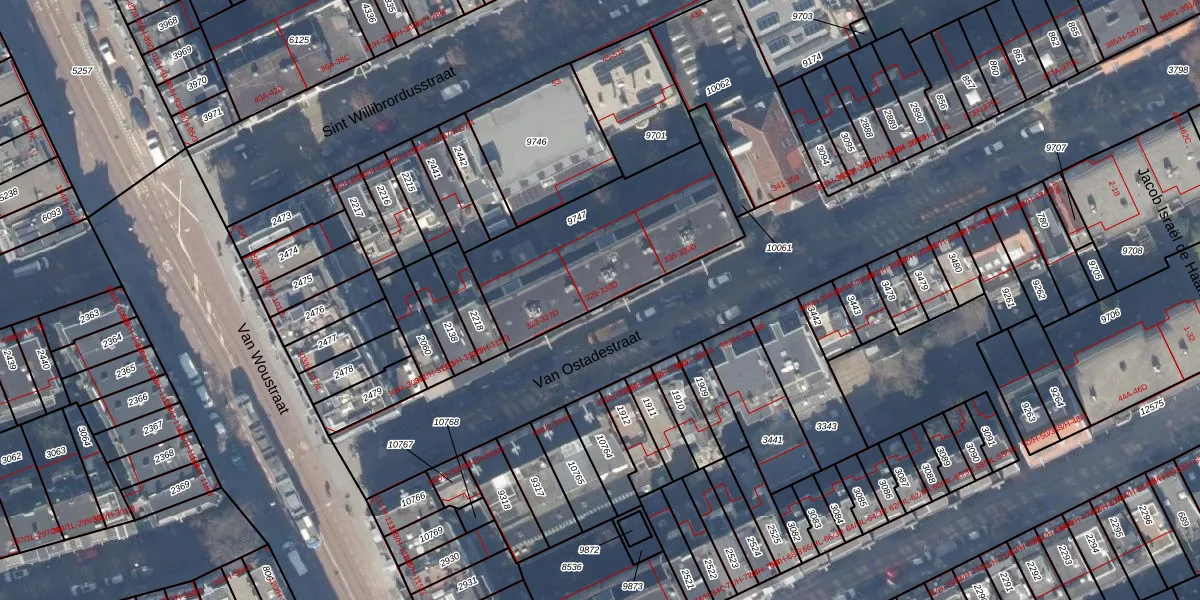 Van Ostadestraat 331-D is gelegen op kadastraal perceel ASD18V9747. Deze kadastrale aanduiding is uniek en wordt gebruikt door het Kadaster om eigendomsrechten en andere zakelijke rechten vast te leggen. Het perceel maakt onderdeel uit van de kadastrale gemeente Amsterdam.