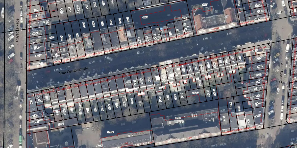 Van Ostadestraat 34-3 is gelegen op kadastraal perceel ASD18V2386. Deze kadastrale aanduiding is uniek en wordt gebruikt door het Kadaster om eigendomsrechten en andere zakelijke rechten vast te leggen. Het perceel maakt onderdeel uit van de kadastrale gemeente Amsterdam.