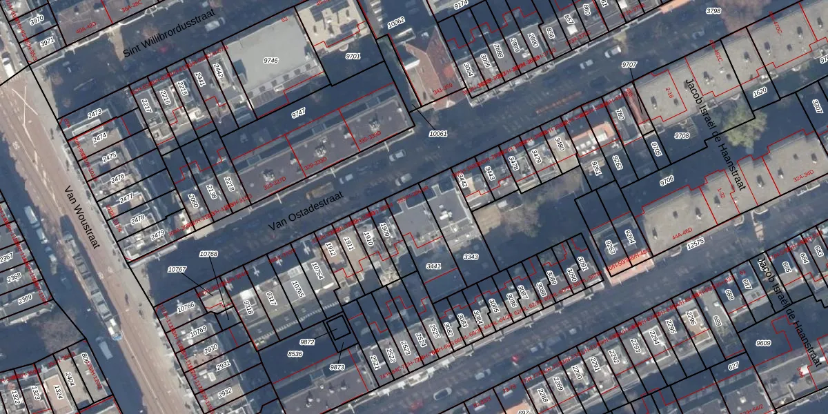 Van Ostadestraat 384-1 is gelegen op kadastraal perceel ASD18V3441. Deze kadastrale aanduiding is uniek en wordt gebruikt door het Kadaster om eigendomsrechten en andere zakelijke rechten vast te leggen. Het perceel maakt onderdeel uit van de kadastrale gemeente Amsterdam.