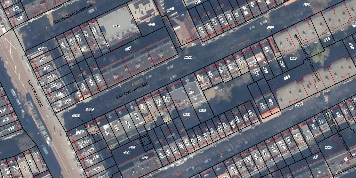 Van Ostadestraat 384-3 is gelegen op kadastraal perceel ASD18V3441. Deze kadastrale aanduiding is uniek en wordt gebruikt door het Kadaster om eigendomsrechten en andere zakelijke rechten vast te leggen. Het perceel maakt onderdeel uit van de kadastrale gemeente Amsterdam.