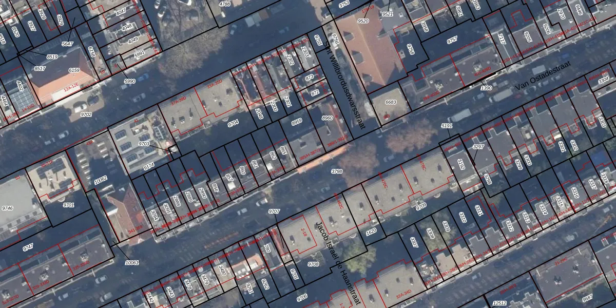 Van Ostadestraat 385-1 is gelegen op kadastraal perceel ASD18V8959. Deze kadastrale aanduiding is uniek en wordt gebruikt door het Kadaster om eigendomsrechten en andere zakelijke rechten vast te leggen. Het perceel maakt onderdeel uit van de kadastrale gemeente Amsterdam.