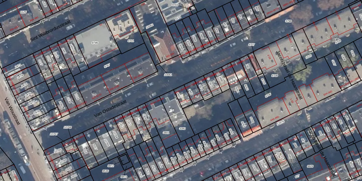 Van Ostadestraat 388-3 is gelegen op kadastraal perceel ASD18V3442. Deze kadastrale aanduiding is uniek en wordt gebruikt door het Kadaster om eigendomsrechten en andere zakelijke rechten vast te leggen. Het perceel maakt onderdeel uit van de kadastrale gemeente Amsterdam.