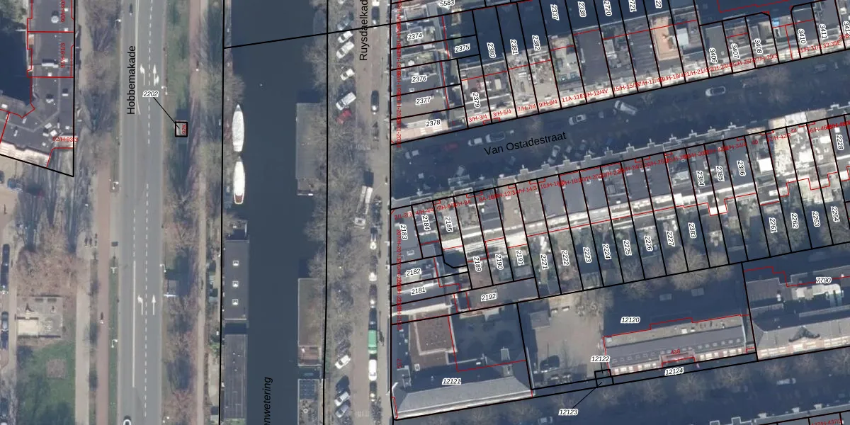 Van Ostadestraat 4-4 is gelegen op kadastraal perceel ASD18V2184. Deze kadastrale aanduiding is uniek en wordt gebruikt door het Kadaster om eigendomsrechten en andere zakelijke rechten vast te leggen. Het perceel maakt onderdeel uit van de kadastrale gemeente Amsterdam.