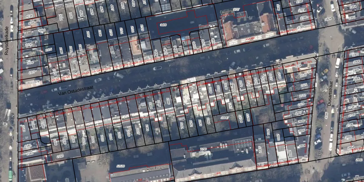 Van Ostadestraat 42-1 is gelegen op kadastraal perceel ASD18V2262. Deze kadastrale aanduiding is uniek en wordt gebruikt door het Kadaster om eigendomsrechten en andere zakelijke rechten vast te leggen. Het perceel maakt onderdeel uit van de kadastrale gemeente Amsterdam.