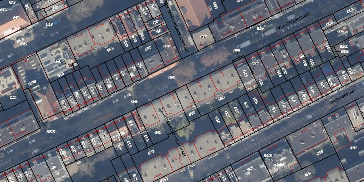 Van Ostadestraat 462-A is gelegen op kadastraal perceel ASD18V1620. Deze kadastrale aanduiding is uniek en wordt gebruikt door het Kadaster om eigendomsrechten en andere zakelijke rechten vast te leggen. Het perceel maakt onderdeel uit van de kadastrale gemeente Amsterdam.