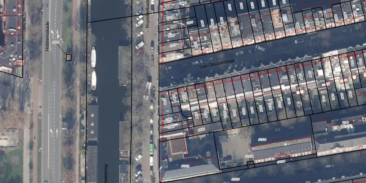 Van Ostadestraat 6-1 is gelegen op kadastraal perceel ASD18V2185. Deze kadastrale aanduiding is uniek en wordt gebruikt door het Kadaster om eigendomsrechten en andere zakelijke rechten vast te leggen. Het perceel maakt onderdeel uit van de kadastrale gemeente Amsterdam.