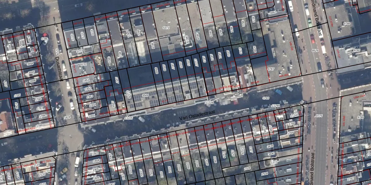 Het perceel waarop Van Ostadestraat 75-D staat heeft een oppervlakte van 106 m². Dit is een middelgroot perceel. De perceeloppervlakte wordt geregistreerd door het Kadaster. Gedetailleerde informatie over de maten van dit perceel kunt u vinden in het rapport Kadastrale kaart met maatvoering van Van Ostadestraat 75-D.