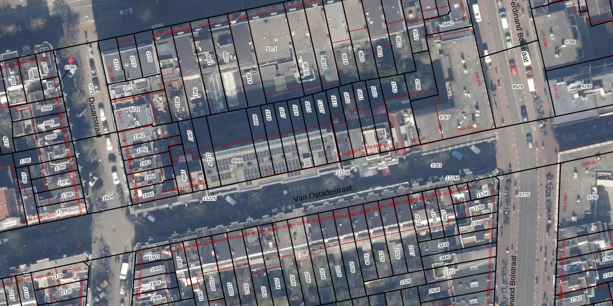 Het perceel waarop Van Ostadestraat 75-E staat heeft een oppervlakte van 106 m². Dit is een middelgroot perceel. De perceeloppervlakte wordt geregistreerd door het Kadaster. Gedetailleerde informatie over de maten van dit perceel kunt u vinden in het rapport Kadastrale kaart met maatvoering van Van Ostadestraat 75-E.
