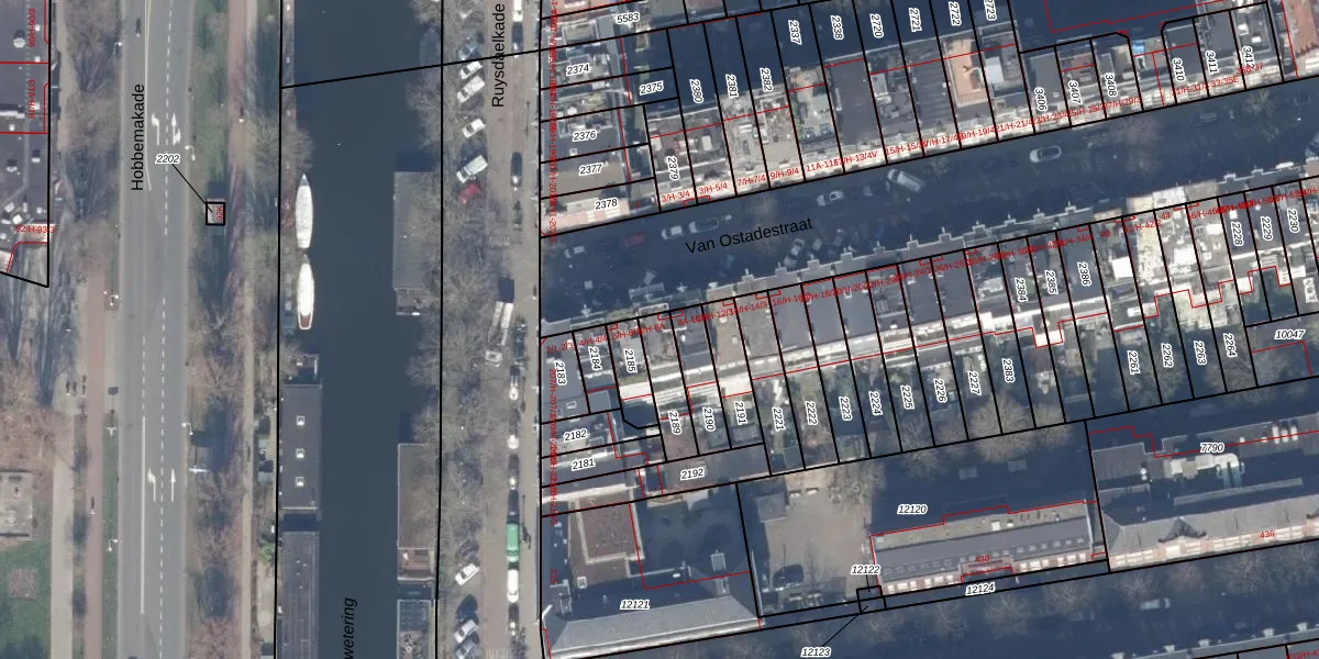 Van Ostadestraat 8-2 is gelegen op kadastraal perceel ASD18V2189. Deze kadastrale aanduiding is uniek en wordt gebruikt door het Kadaster om eigendomsrechten en andere zakelijke rechten vast te leggen. Het perceel maakt onderdeel uit van de kadastrale gemeente Amsterdam.