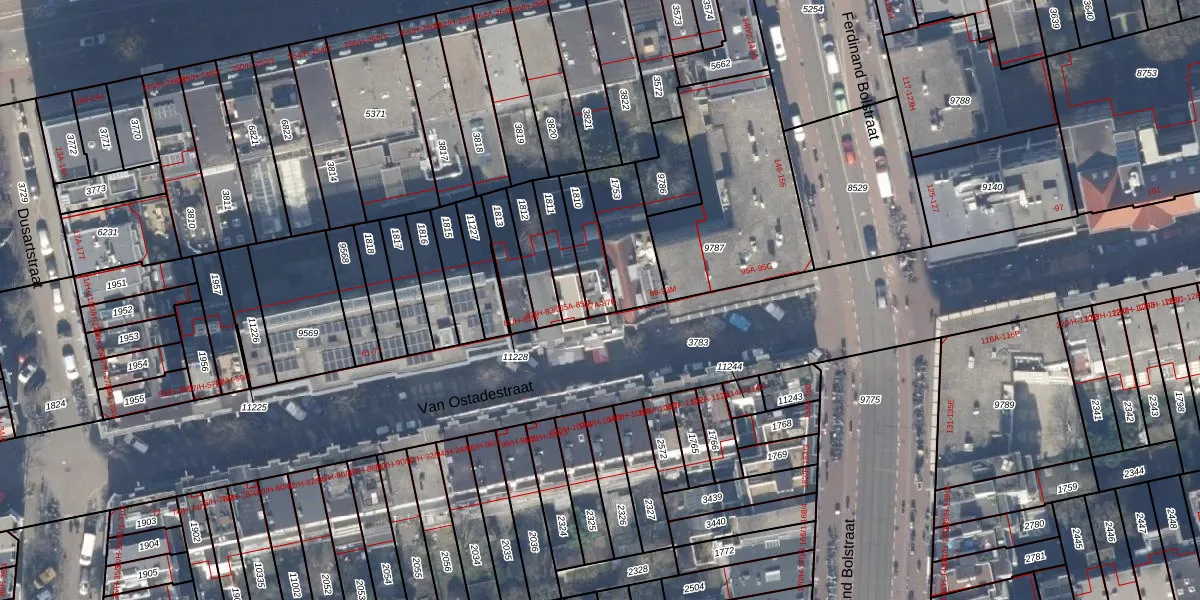 Van Ostadestraat 87-B is gelegen op kadastraal perceel ASD18V1810. Deze kadastrale aanduiding is uniek en wordt gebruikt door het Kadaster om eigendomsrechten en andere zakelijke rechten vast te leggen. Het perceel maakt onderdeel uit van de kadastrale gemeente Amsterdam.
