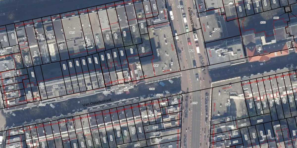 Van Ostadestraat 93-F is gelegen op kadastraal perceel ASD18V9787. Deze kadastrale aanduiding is uniek en wordt gebruikt door het Kadaster om eigendomsrechten en andere zakelijke rechten vast te leggen. Het perceel maakt onderdeel uit van de kadastrale gemeente Amsterdam.