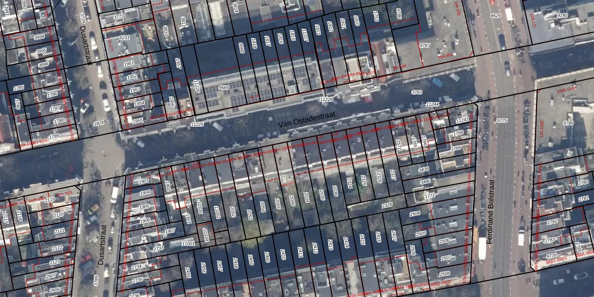Van Ostadestraat 94-1 is gelegen op kadastraal perceel ASD18V2034. Deze kadastrale aanduiding is uniek en wordt gebruikt door het Kadaster om eigendomsrechten en andere zakelijke rechten vast te leggen. Het perceel maakt onderdeel uit van de kadastrale gemeente Amsterdam.