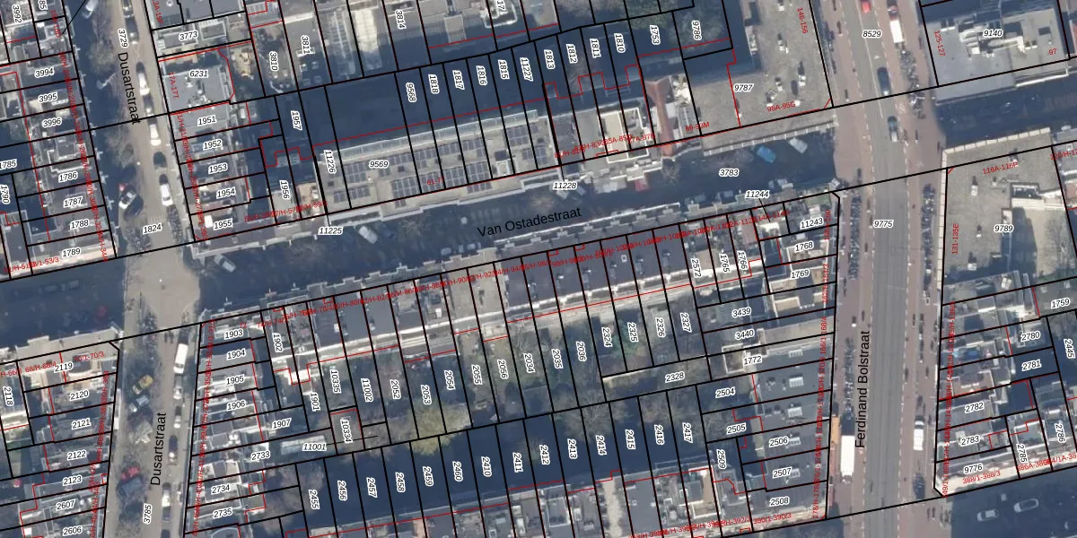Van Ostadestraat 96-1 is gelegen op kadastraal perceel ASD18V2035. Deze kadastrale aanduiding is uniek en wordt gebruikt door het Kadaster om eigendomsrechten en andere zakelijke rechten vast te leggen. Het perceel maakt onderdeel uit van de kadastrale gemeente Amsterdam.