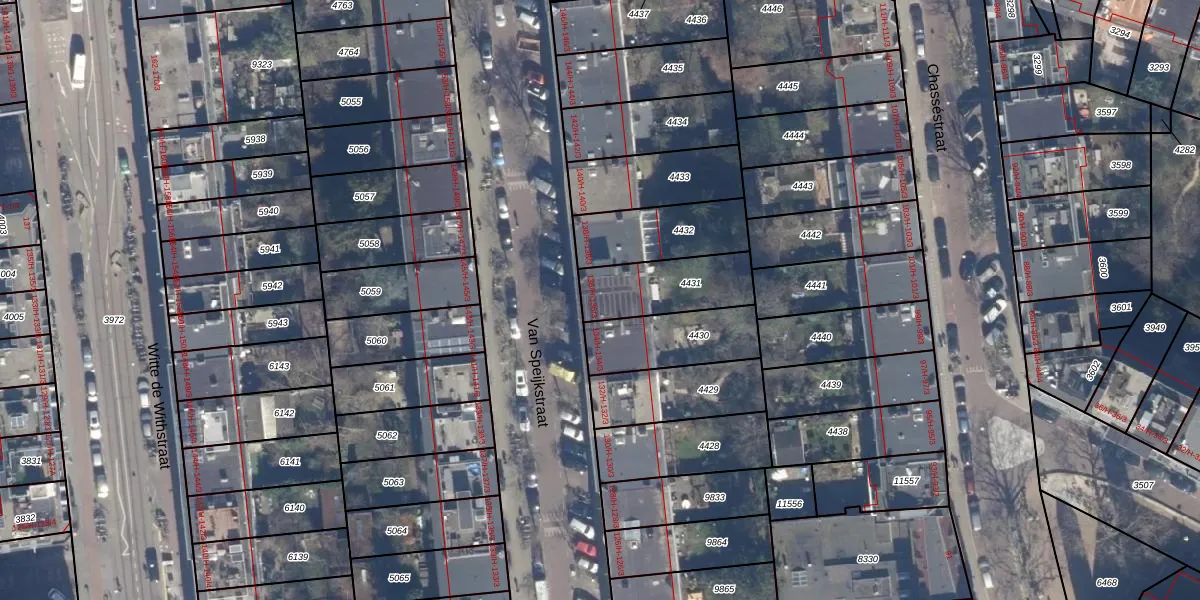 Het perceel waarop Van Speijkstraat 136-H staat heeft een oppervlakte van 257 m². Dit is een middelgroot perceel. De perceeloppervlakte wordt geregistreerd door het Kadaster. Gedetailleerde informatie over de maten van dit perceel kunt u vinden in het rapport Kadastrale kaart met maatvoering van Van Speijkstraat 136-H.