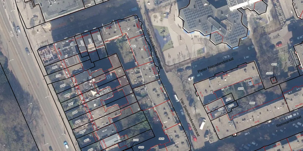 Van Swindendwarsstraat 14-C is gelegen op kadastraal perceel ASD15S9012. Deze kadastrale aanduiding is uniek en wordt gebruikt door het Kadaster om eigendomsrechten en andere zakelijke rechten vast te leggen. Het perceel maakt onderdeel uit van de kadastrale gemeente Amsterdam.