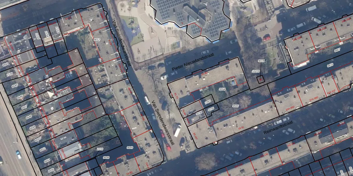 Van Swindendwarsstraat 63 is gelegen op kadastraal perceel ASD15S9554. Deze kadastrale aanduiding is uniek en wordt gebruikt door het Kadaster om eigendomsrechten en andere zakelijke rechten vast te leggen. Het perceel maakt onderdeel uit van de kadastrale gemeente Amsterdam.