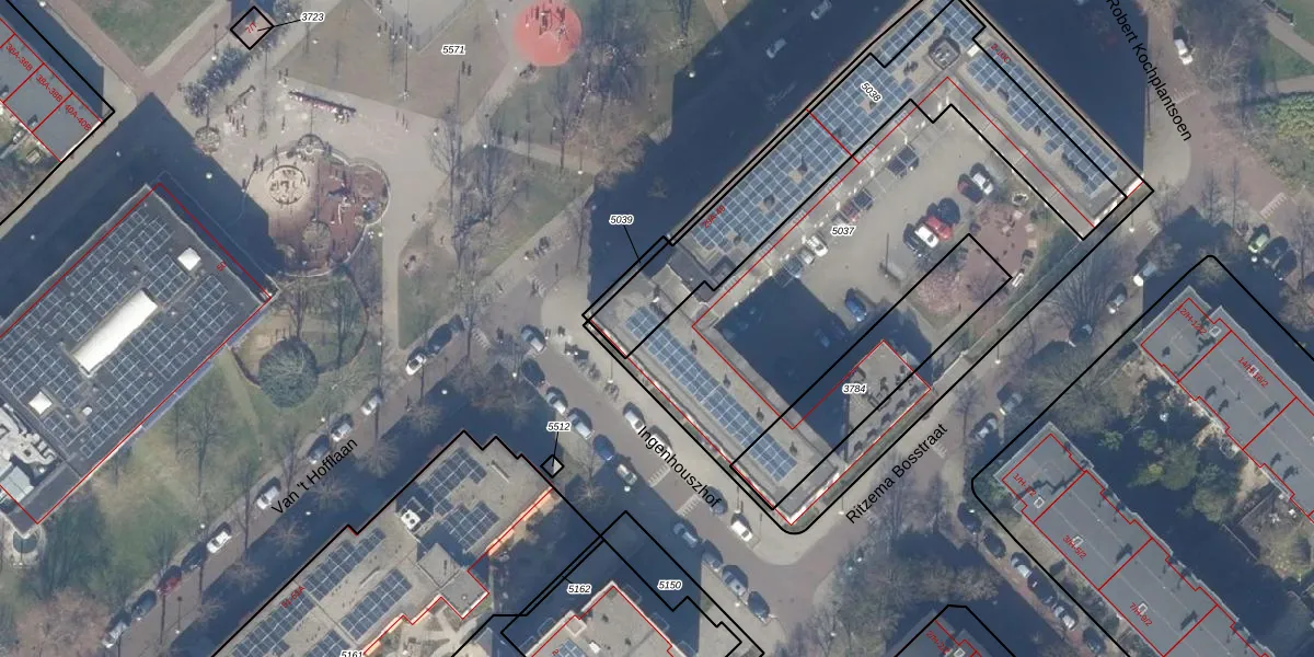 Het perceel waarop Van 't Hofflaan 39-E staat heeft een oppervlakte van 952 m². Dit is een groot perceel. De perceeloppervlakte wordt geregistreerd door het Kadaster. Gedetailleerde informatie over de maten van dit perceel kunt u vinden in het rapport Kadastrale kaart met maatvoering van Van 't Hofflaan 39-E.