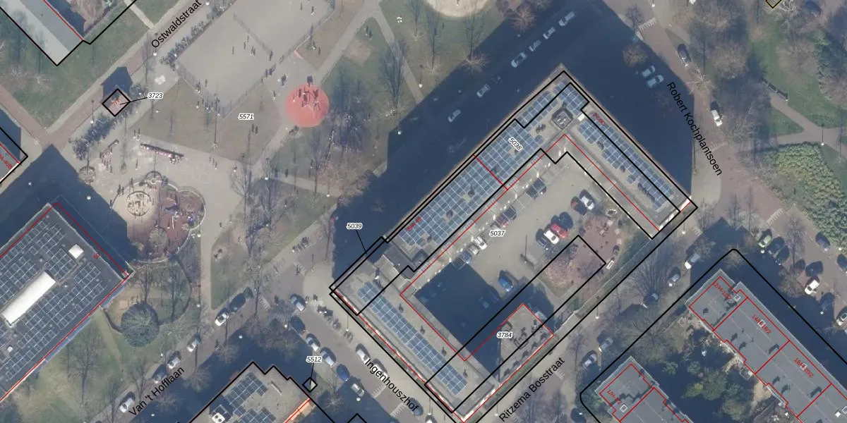 Het perceel waarop Van 't Hofflaan 39-H staat heeft een oppervlakte van 952 m². Dit is een groot perceel. De perceeloppervlakte wordt geregistreerd door het Kadaster. Gedetailleerde informatie over de maten van dit perceel kunt u vinden in het rapport Kadastrale kaart met maatvoering van Van 't Hofflaan 39-H.