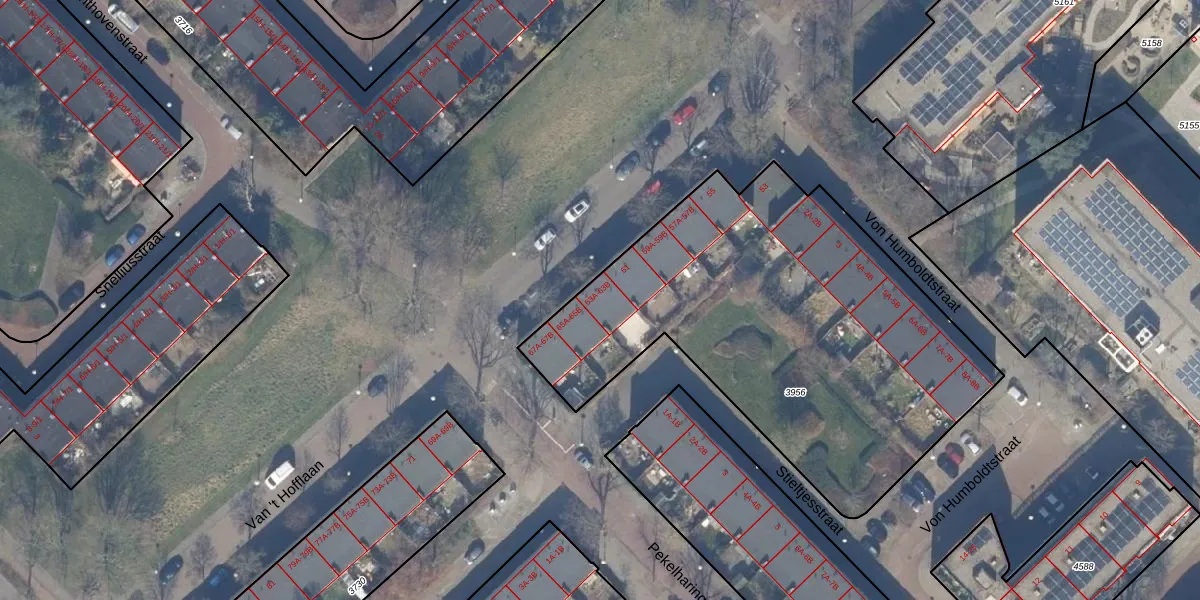 Van 't Hofflaan 63-B is gelegen op kadastraal perceel WTG02A3956. Deze kadastrale aanduiding is uniek en wordt gebruikt door het Kadaster om eigendomsrechten en andere zakelijke rechten vast te leggen. Het perceel maakt onderdeel uit van de kadastrale gemeente Watergraafsmeer.
