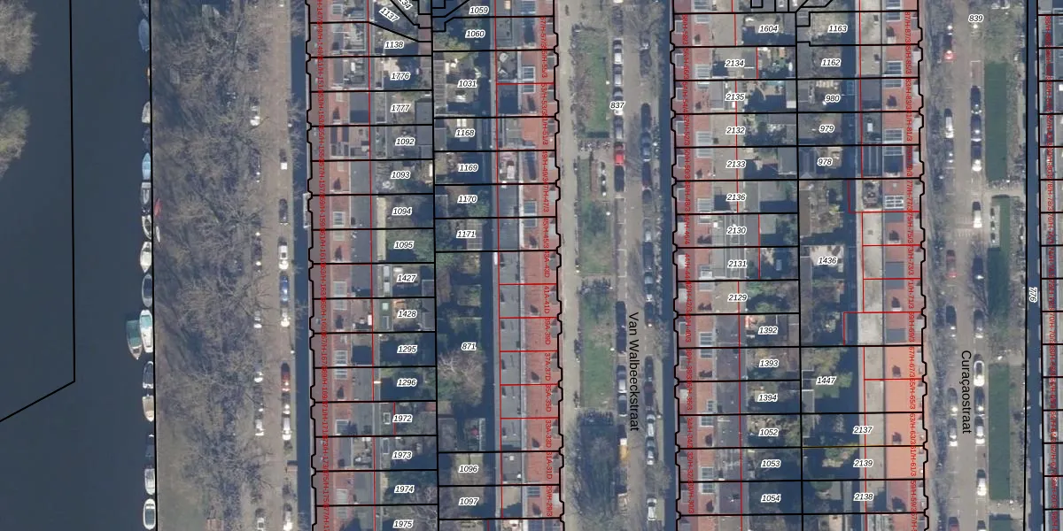 Het perceel waarop Van Walbeeckstraat 43-D staat heeft een oppervlakte van 879 m². Dit is een groot perceel. De perceeloppervlakte wordt geregistreerd door het Kadaster. Gedetailleerde informatie over de maten van dit perceel kunt u vinden in het rapport Kadastrale kaart met maatvoering van Van Walbeeckstraat 43-D.