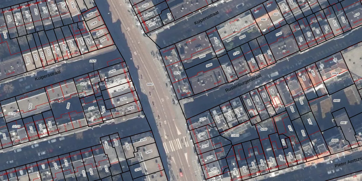 Het adres ligt op het perceel ASD18-V-9575, dat zich in de kadastrale gemeente Amsterdam bevindt. Het perceel is kleiner dan gemiddeld in Amsterdam. Het perceel is 283 m² groot, terwijl het gemiddelde ligt op 559,23 m². Het kleinste perceel in de kadastrale gemeente is 0 m² groot. De grootste perceeloppervlakte is 12,5 ha. Op het perceel zijn 13 adressen aanwezig. De laatste wijziging in het de Basisregistratie Kadaster (BRK) was op 17-10-2006.