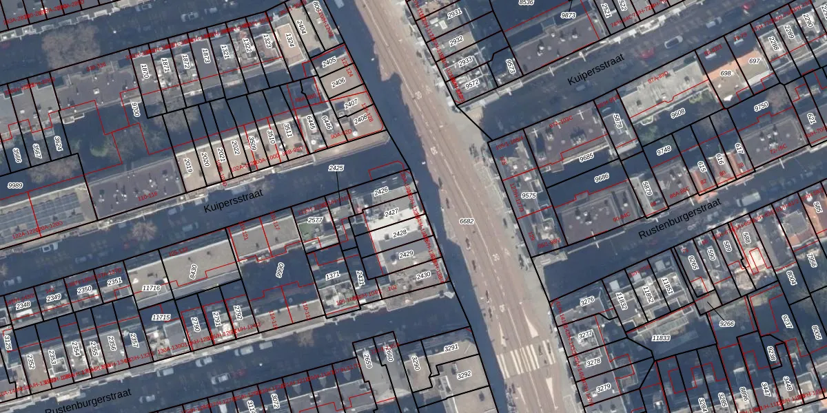 Het adres ligt op het perceel ASD18-V-2427, dat zich in de kadastrale gemeente Amsterdam bevindt. Het perceel is kleiner dan gemiddeld in Amsterdam. Het perceel is 96 m² groot, terwijl het gemiddelde ligt op 558,8 m². Het kleinste perceel in de kadastrale gemeente is 0 m² groot. De grootste perceeloppervlakte is 12,5 ha. Op het perceel zijn 4 adressen aanwezig. In de Basisregistratie Kadaster (BRK) werden de grenzen van het perceel geregistreerd op 09-08-2006.