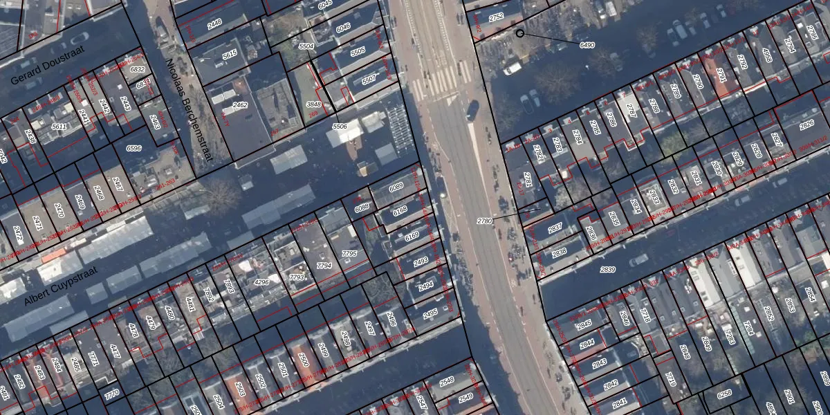 Het adres is gelegen op perceel 6168 in de sectie R en de kadastrale gemeente Amsterdam. De kadastrale aanduiding is aldus ASD14-R-6168. Het perceel is kleiner dan gemiddeld in Amsterdam. Het perceel is 86 m² groot, terwijl het gemiddelde ligt op 354,38 m². Het kleinste perceel in de kadastrale gemeente is 0 m² groot. De grootste perceeloppervlakte is 9,9 ha. Op het perceel liggen in totaal 5 adressen. In de Basisregistratie Kadaster (BRK) werden de grenzen van het perceel geregistreerd op 30-10-2006.