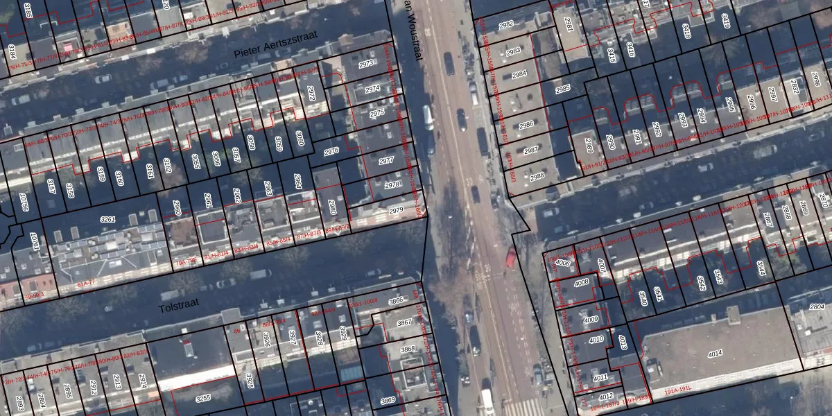 Het adres ligt op het perceel ASD18-V-2979, dat zich in de kadastrale gemeente Amsterdam bevindt. Het perceel is kleiner dan gemiddeld in Amsterdam. Het perceel is 124 m² groot, terwijl het gemiddelde ligt op 559,23 m². De grootste perceeloppervlakte in de kadastrale gemeente is 12,5 ha. De kleinste oppervlakte bedraagt 0 m². Er zijn 5 adressen aanwezig op het perceel. De laatste wijziging in het de Basisregistratie Kadaster (BRK) was op 09-08-2006.