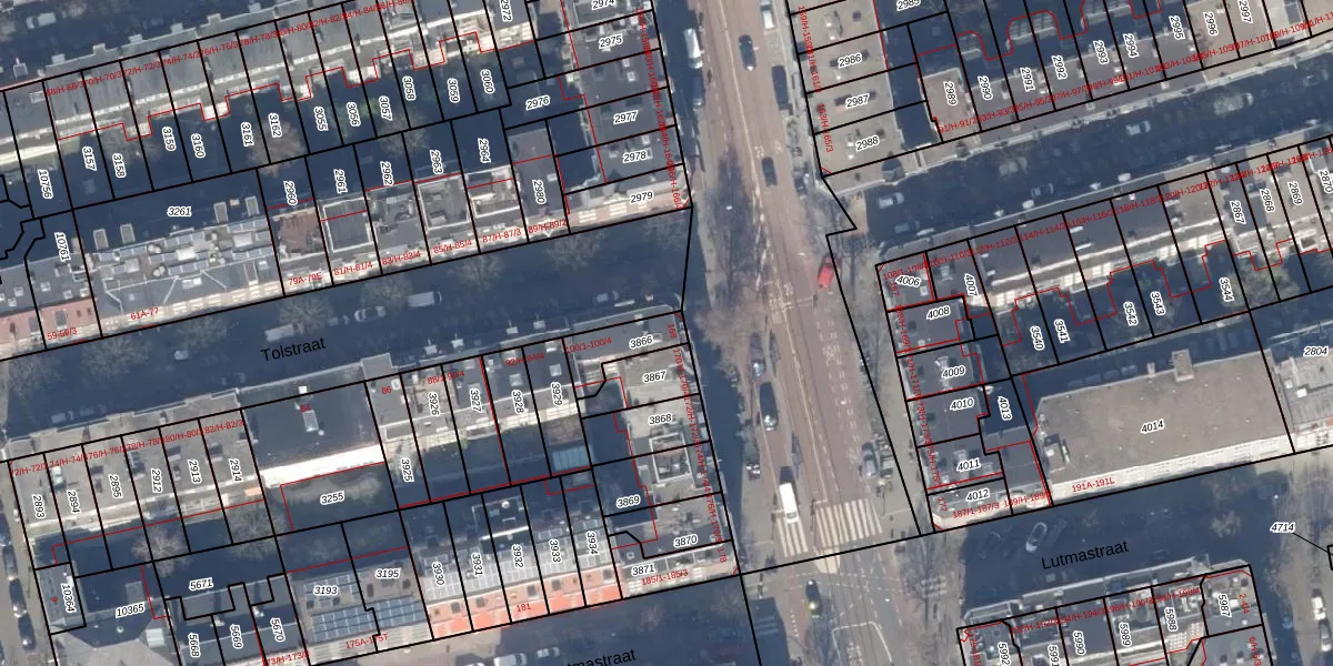 Het adres ligt op het perceel ASD18-V-3866, dat zich in de kadastrale gemeente Amsterdam bevindt. Het perceel is kleiner dan gemiddeld in Amsterdam. Het perceel is 106 m² groot, terwijl het gemiddelde ligt op 558,8 m². De grootste perceeloppervlakte in de kadastrale gemeente is 12,5 ha. De kleinste oppervlakte bedraagt 0 m². Op het perceel zijn 5 adressen aanwezig. De laatste wijziging in het de Basisregistratie Kadaster (BRK) was op 09-08-2006.