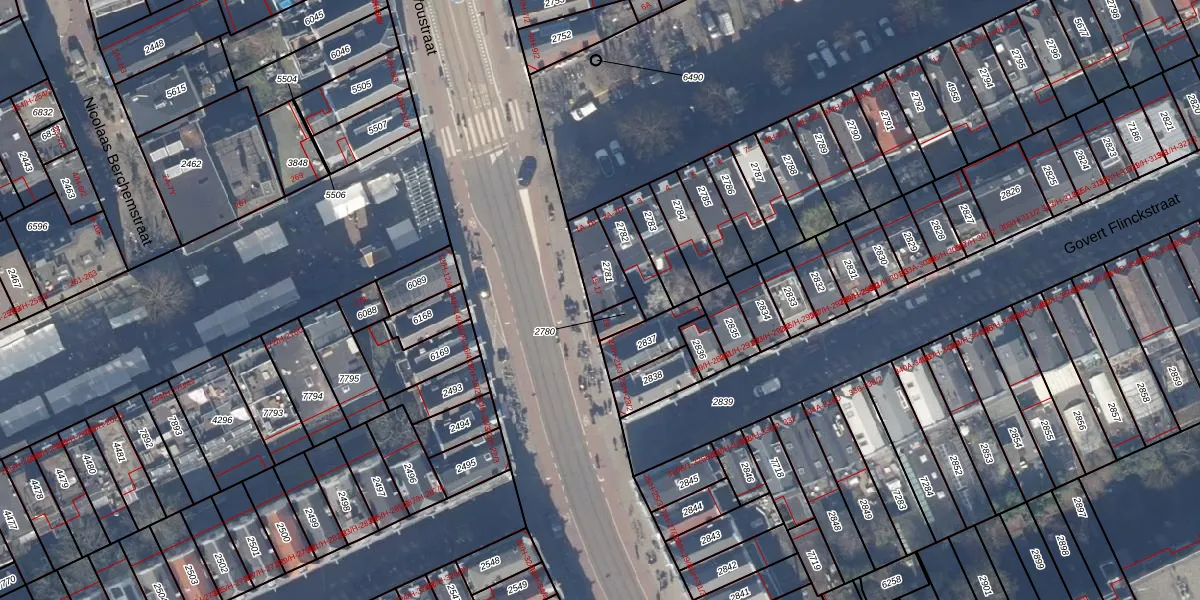 Het adres is gelegen op perceel 2781 in de sectie R en de kadastrale gemeente Amsterdam. De kadastrale aanduiding is aldus ASD14-R-2781. De gemiddelde perceelgrootte in Amsterdam is 354,38 m². Dit perceel is kleiner: de perceeloppervlakte bedraagt 103 m². Het grootste perceel in de kadastrale gemeente is 9,9 ha. Het kleinste perceel heeft een oppervlakte van 0 m². Op het perceel liggen in totaal 4 adressen. De laatste wijziging in het de Basisregistratie Kadaster (BRK) was op 10-11-2006.