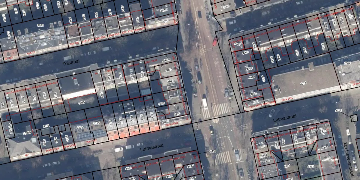 Het adres is gelegen op perceel 3869 in de sectie V en de kadastrale gemeente Amsterdam. De kadastrale aanduiding is aldus ASD18-V-3869. Het perceel is 132 m² groot. Dat is kleiner dan de gemiddelde perceeloppervlakte in Amsterdam, dat op 558,8 m² ligt. Het kleinste perceel in de kadastrale gemeente is 0 m² groot. De grootste perceeloppervlakte is 12,5 ha. Op het perceel liggen in totaal 5 adressen. In de Basisregistratie Kadaster (BRK) werden de grenzen van het perceel geregistreerd op 09-08-2006.