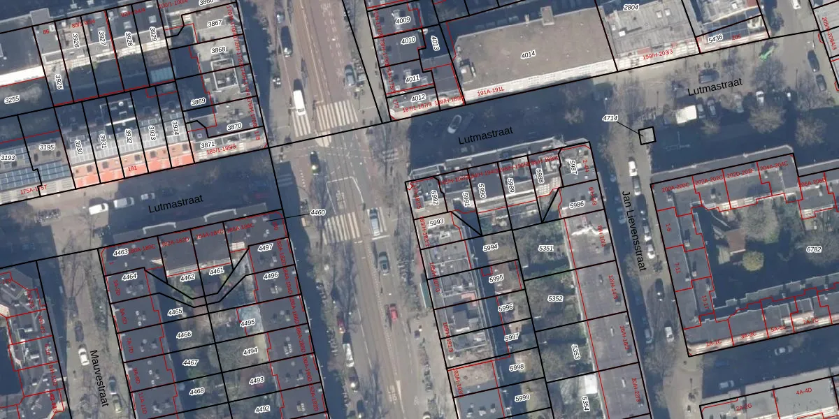 Het adres ligt op het perceel ASD18-V-5992, dat zich in de kadastrale gemeente Amsterdam bevindt. Het perceel is kleiner dan gemiddeld in Amsterdam. Het perceel is 69 m² groot, terwijl het gemiddelde ligt op 558,8 m². Het grootste perceel in de kadastrale gemeente is 12,5 ha. Het kleinste perceel heeft een oppervlakte van 0 m². Op het perceel liggen in totaal 6 adressen. In de Basisregistratie Kadaster (BRK) werden de grenzen van het perceel geregistreerd op 10-11-2006.