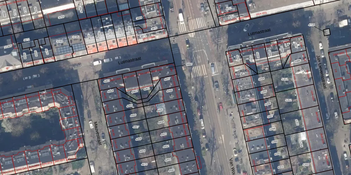 Van Woustraat 184-A is gelegen op kadastraal perceel ASD18V4496. Deze kadastrale aanduiding is uniek en wordt gebruikt door het Kadaster om eigendomsrechten en andere zakelijke rechten vast te leggen. Het perceel maakt onderdeel uit van de kadastrale gemeente Amsterdam.