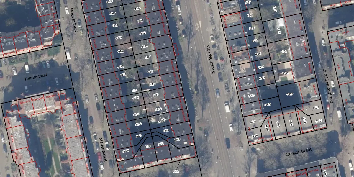 Van Woustraat 202-B is gelegen op kadastraal perceel ASD18V4487. Deze kadastrale aanduiding is uniek en wordt gebruikt door het Kadaster om eigendomsrechten en andere zakelijke rechten vast te leggen. Het perceel maakt onderdeel uit van de kadastrale gemeente Amsterdam.
