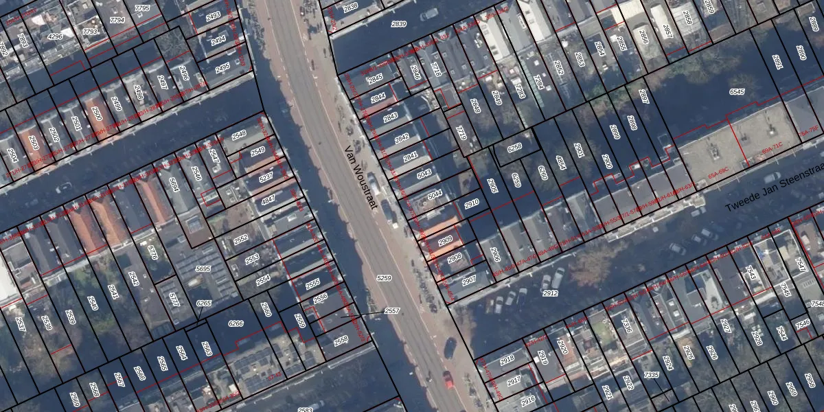 Van Woustraat 37-B is gelegen op kadastraal perceel ASD14R5044. Deze kadastrale aanduiding is uniek en wordt gebruikt door het Kadaster om eigendomsrechten en andere zakelijke rechten vast te leggen. Het perceel maakt onderdeel uit van de kadastrale gemeente Amsterdam.