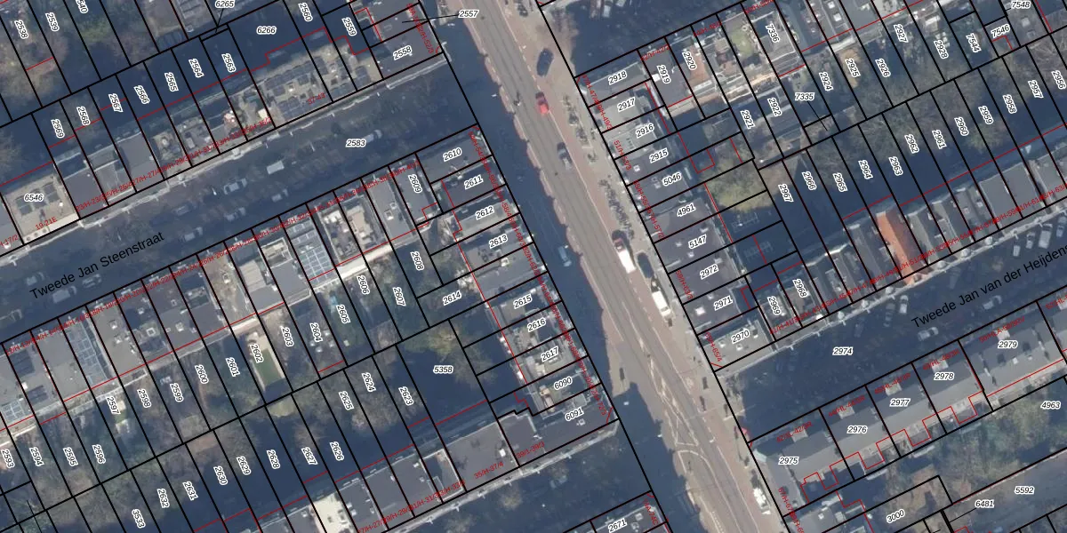 Het adres ligt op het perceel ASD14-R-2614, dat zich in de kadastrale gemeente Amsterdam bevindt. Het perceel is kleiner dan gemiddeld in Amsterdam. Het perceel is 148 m² groot, terwijl het gemiddelde ligt op 354,47 m². De grootste perceeloppervlakte in de kadastrale gemeente is 9,9 ha. De kleinste oppervlakte bedraagt 0 m². Op het perceel zijn 4 adressen aanwezig. De laatste wijziging in het de Basisregistratie Kadaster (BRK) was op 30-10-2006.