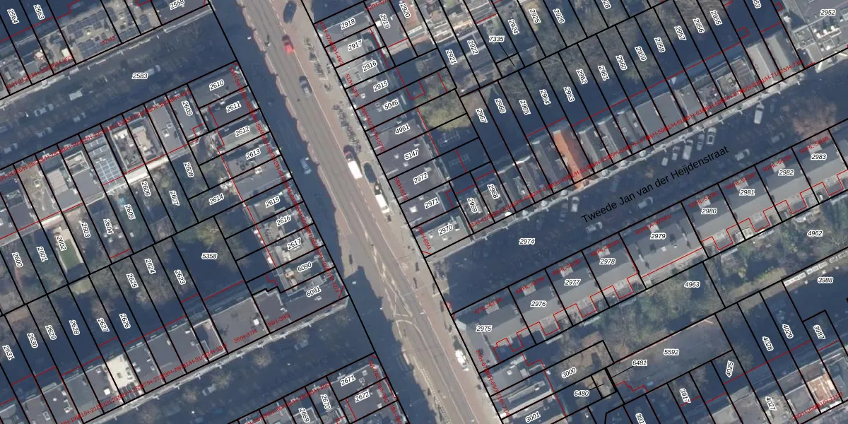 Het adres ligt op het perceel ASD14-R-2971, dat zich in de kadastrale gemeente Amsterdam bevindt. Het perceel is 81 m² groot. Dat is kleiner dan de gemiddelde perceeloppervlakte in Amsterdam, dat op 354,38 m² ligt. Het grootste perceel in de kadastrale gemeente is 9,9 ha. Het kleinste perceel heeft een oppervlakte van 0 m². Er zijn 4 adressen aanwezig op het perceel. In de Basisregistratie Kadaster (BRK) werden de grenzen van het perceel geregistreerd op 10-11-2006.