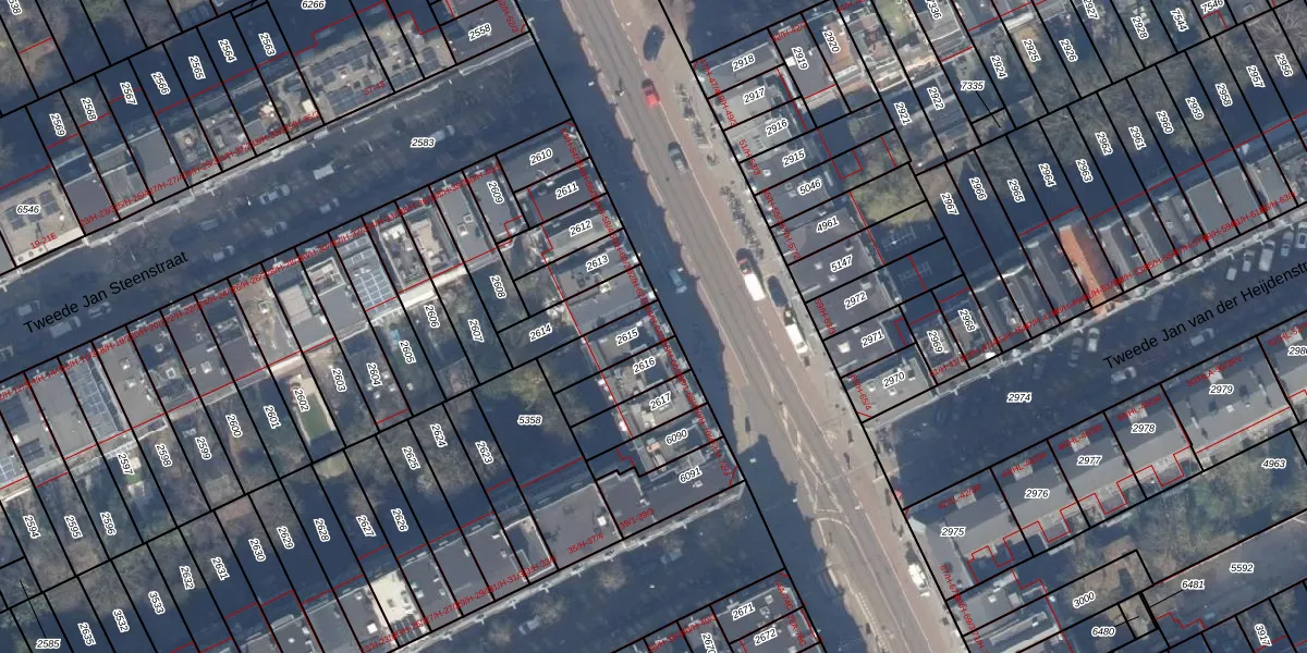 Het adres ligt op het perceel ASD14-R-2615, dat zich in de kadastrale gemeente Amsterdam bevindt. De gemiddelde perceelgrootte in Amsterdam is 354,38 m². Dit perceel is kleiner: de perceeloppervlakte bedraagt 118 m². Het kleinste perceel in de kadastrale gemeente is 0 m² groot. De grootste perceeloppervlakte is 9,9 ha. Er zijn 4 adressen aanwezig op het perceel. De huidige grenzen van het perceel zijn digitaal in de Basisregistratie Kadaster (BRK) geregistreerd op 30-10-2006.
