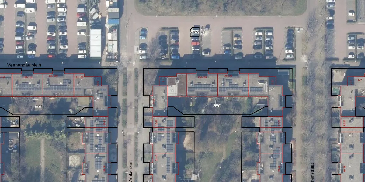 Het perceel waarop Varikstraat 1-G staat heeft een oppervlakte van 6480 m². Dit is een zeer groot perceel. De perceeloppervlakte wordt geregistreerd door het Kadaster. Gedetailleerde informatie over de maten van dit perceel kunt u vinden in het rapport Kadastrale kaart met maatvoering van Varikstraat 1-G.