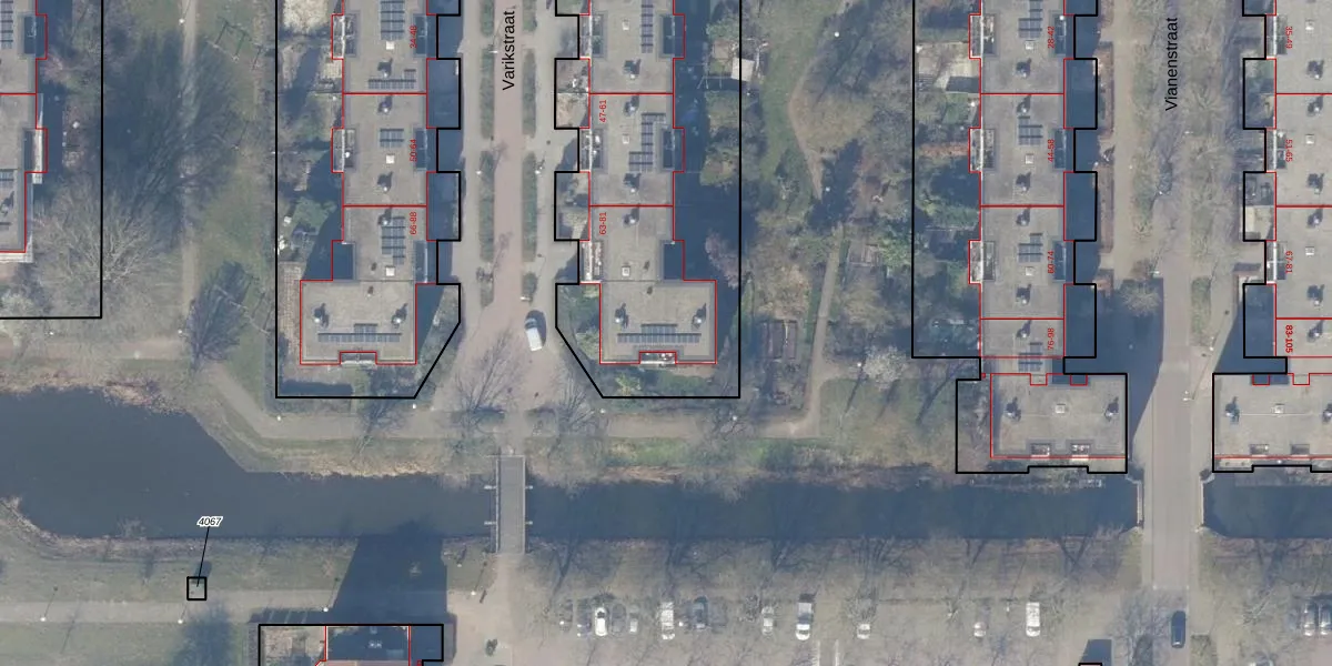 Het perceel waarop Varikstraat 77 staat heeft een oppervlakte van 6480 m². Dit is een zeer groot perceel. De perceeloppervlakte wordt geregistreerd door het Kadaster. Gedetailleerde informatie over de maten van dit perceel kunt u vinden in het rapport Kadastrale kaart met maatvoering van Varikstraat 77.