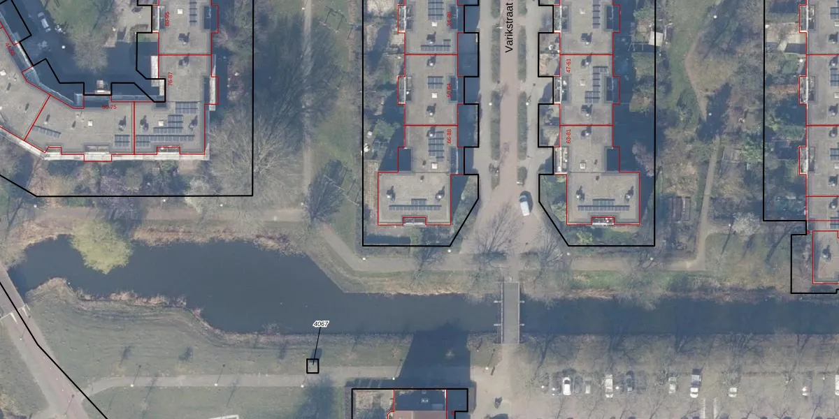 Het perceel waarop Varikstraat 80 staat heeft een oppervlakte van 9782 m². Dit is een zeer groot perceel. De perceeloppervlakte wordt geregistreerd door het Kadaster. Gedetailleerde informatie over de maten van dit perceel kunt u vinden in het rapport Kadastrale kaart met maatvoering van Varikstraat 80.