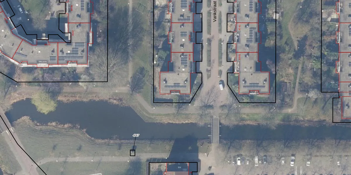 Het perceel waarop Varikstraat 82 staat heeft een oppervlakte van 9782 m². Dit is een zeer groot perceel. De perceeloppervlakte wordt geregistreerd door het Kadaster. Gedetailleerde informatie over de maten van dit perceel kunt u vinden in het rapport Kadastrale kaart met maatvoering van Varikstraat 82.