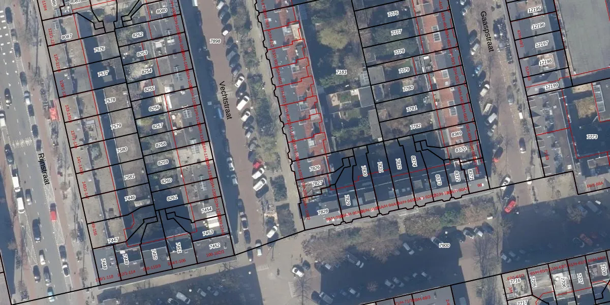 Vechtstraat 103-H is gelegen op kadastraal perceel ASD18V7181. Deze kadastrale aanduiding is uniek en wordt gebruikt door het Kadaster om eigendomsrechten en andere zakelijke rechten vast te leggen. Het perceel maakt onderdeel uit van de kadastrale gemeente Amsterdam.