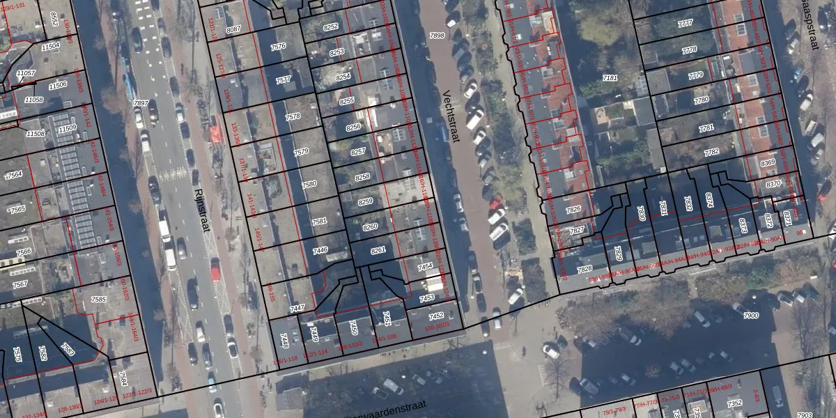 Het perceel waarop het adres ligt is ASD18-V-8260. De afkorting 'ASD18' staat voor kadastrale gemeente Amsterdam. Het perceel is kleiner dan gemiddeld in Amsterdam. Het perceel is 137 m² groot, terwijl het gemiddelde ligt op 559,23 m². De grootste perceeloppervlakte in de kadastrale gemeente is 12,5 ha. De kleinste oppervlakte bedraagt 0 m². Op het perceel zijn 4 adressen aanwezig. De laatste wijziging in het de Basisregistratie Kadaster (BRK) was op 17-11-2006.