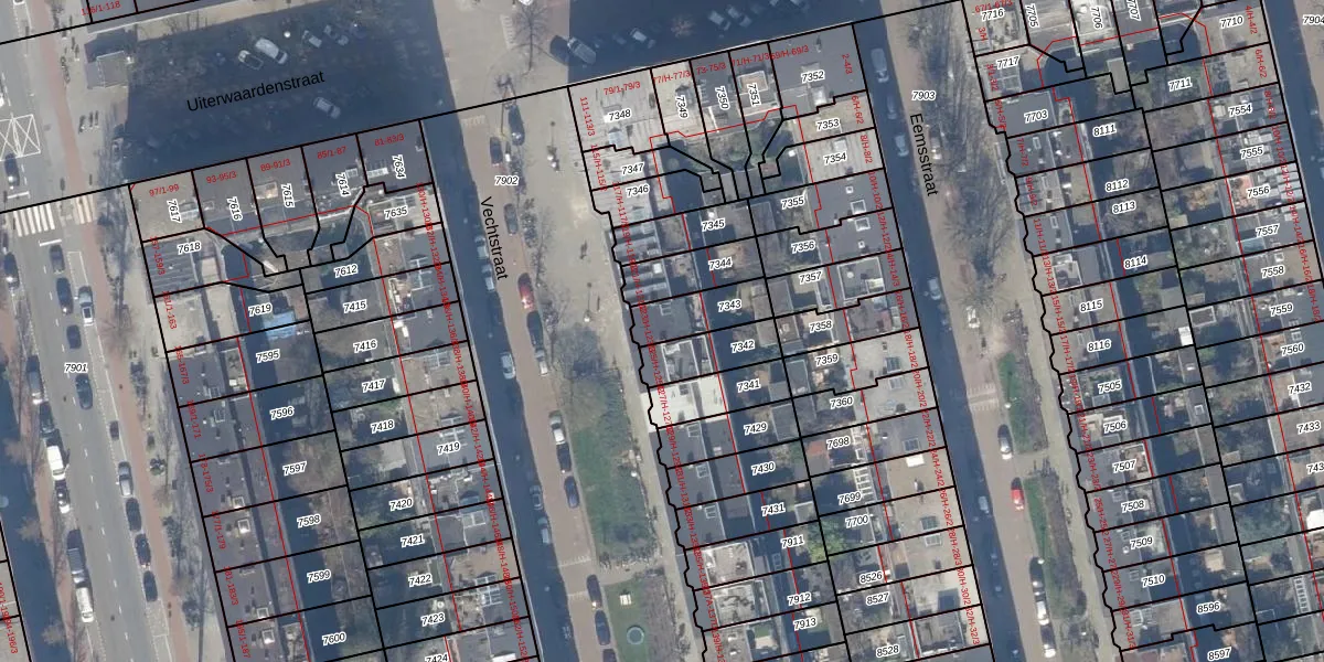 Het perceel waarop het adres ligt is ASD18-V-7343. De afkorting 'ASD18' staat voor kadastrale gemeente Amsterdam. Het perceel is kleiner dan gemiddeld in Amsterdam. Het perceel is 134 m² groot, terwijl het gemiddelde ligt op 559,23 m². Het grootste perceel in de kadastrale gemeente is 12,5 ha. Het kleinste perceel heeft een oppervlakte van 0 m². Op het perceel liggen in totaal 4 adressen. De huidige grenzen van het perceel zijn digitaal in de Basisregistratie Kadaster (BRK) geregistreerd op 17-11-2006.