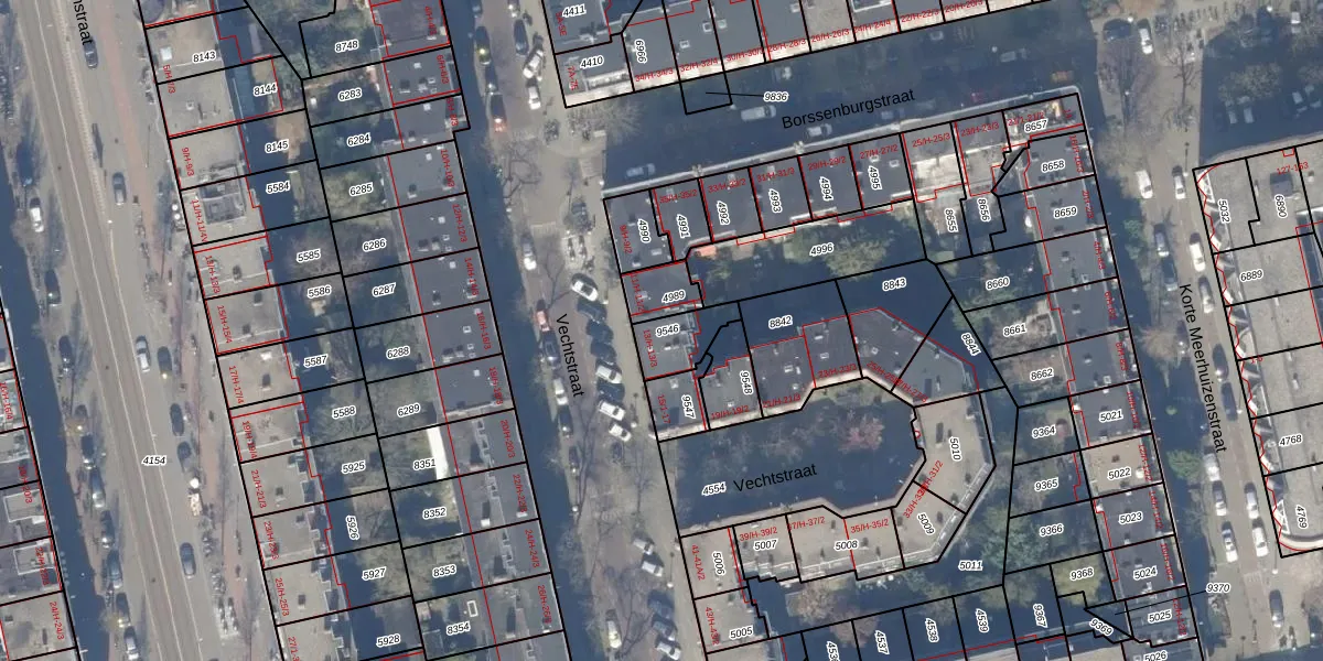 Vechtstraat 13-2 is gelegen op kadastraal perceel ASD18V9546. Deze kadastrale aanduiding is uniek en wordt gebruikt door het Kadaster om eigendomsrechten en andere zakelijke rechten vast te leggen. Het perceel maakt onderdeel uit van de kadastrale gemeente Amsterdam.