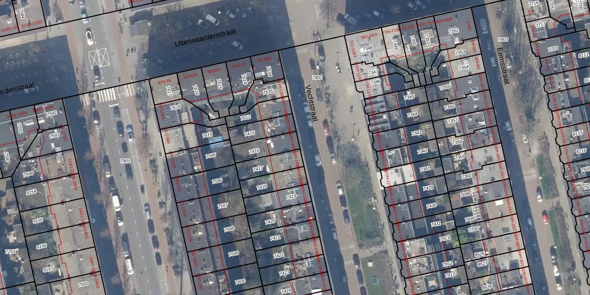 Het perceel waarop het adres ligt is ASD18-V-7416. De afkorting 'ASD18' staat voor kadastrale gemeente Amsterdam. Het perceel is kleiner dan gemiddeld in Amsterdam. Het perceel is 137 m² groot, terwijl het gemiddelde ligt op 559,23 m². Het grootste perceel in de kadastrale gemeente is 12,5 ha. Het kleinste perceel heeft een oppervlakte van 0 m². Er zijn 5 adressen aanwezig op het perceel. In de Basisregistratie Kadaster (BRK) werden de grenzen van het perceel geregistreerd op 29-11-2006.