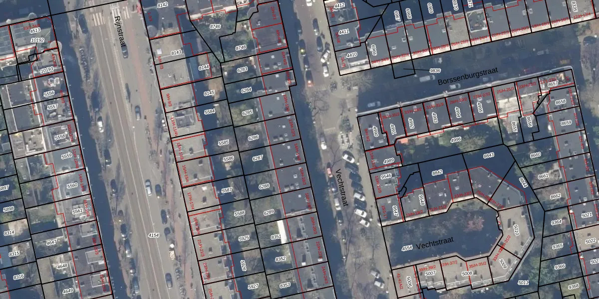 Vechtstraat 14-3 is gelegen op kadastraal perceel ASD18V6287. Deze kadastrale aanduiding is uniek en wordt gebruikt door het Kadaster om eigendomsrechten en andere zakelijke rechten vast te leggen. Het perceel maakt onderdeel uit van de kadastrale gemeente Amsterdam.